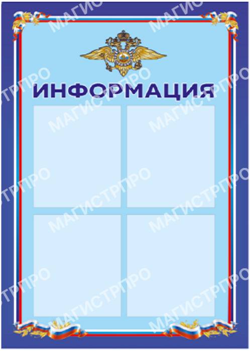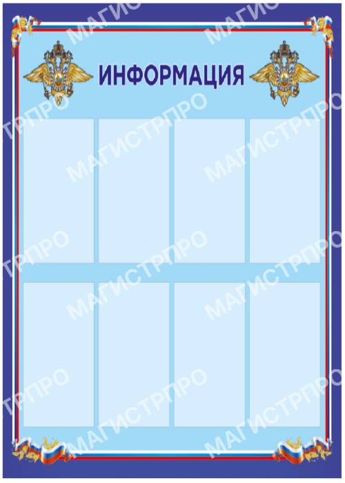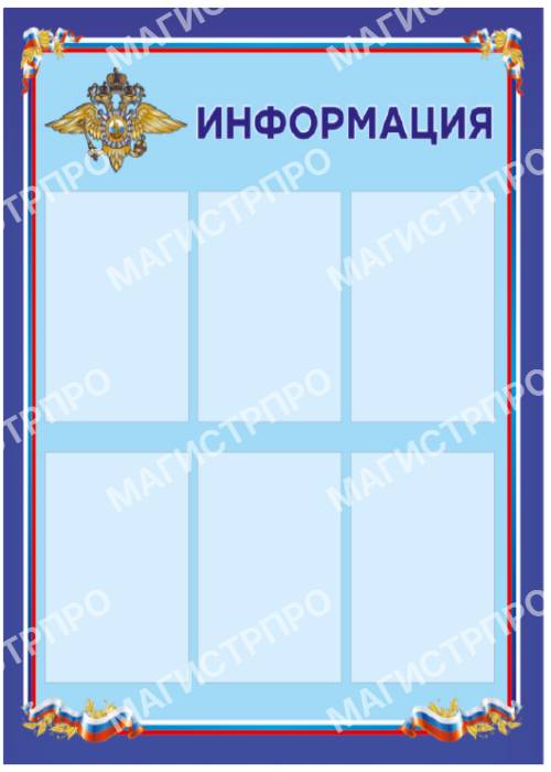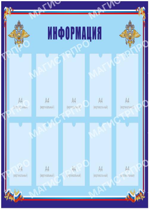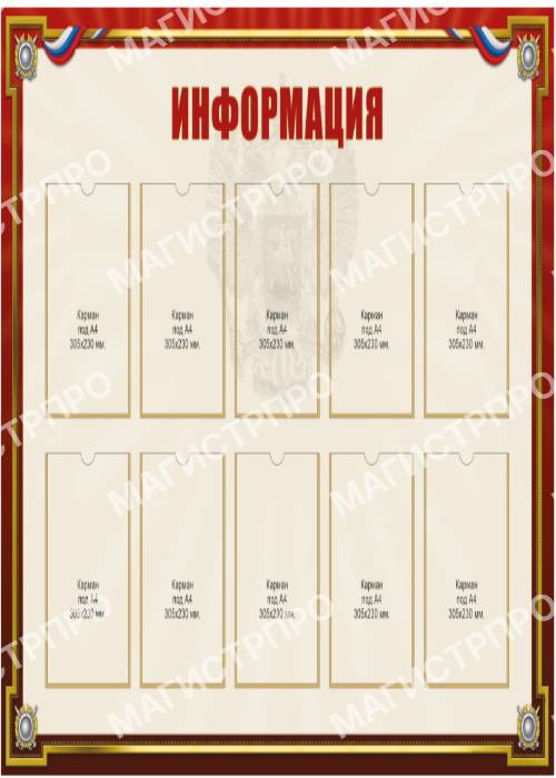 Настенные информационные стенды и доски - важнейший информационный атрибут в офисах, коммерческих и государственных организациях. Это стенды информации для потребителей, сотрудников, граждан. У нас можно купить готовые информационные стенды с надписью: "Информация","Уголок потребителя", "Уголок покупателя", "Уголок заявителя", "Предоставление государственных услуг", "Информация личному составу","Уголок заявителя", "Комната хранения оружия", стенды для МВД РФ , школ и детсадов. Существует огромное множество видов и конфигураций информационных стендов.