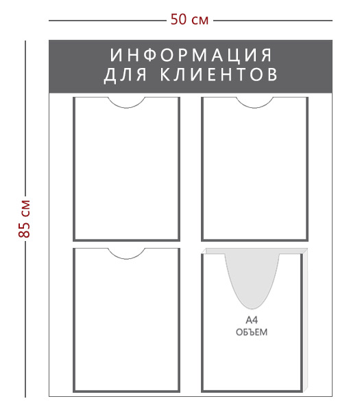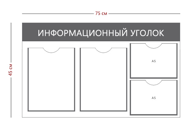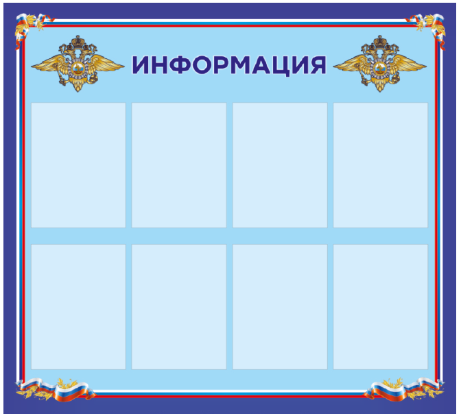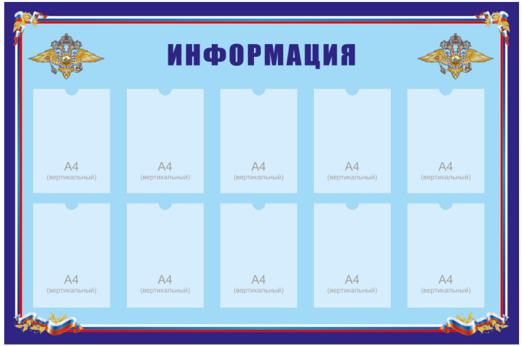 Настенные информационные стенды и доски - важнейший информационный атрибут в офисах, коммерческих и государственных организациях. Это стенды информации для потребителей, сотрудников, граждан. У нас можно купить готовые информационные стенды с надписью: "Информация","Уголок потребителя", "Уголок покупателя", "Уголок заявителя", "Предоставление государственных услуг", "Информация личному составу","Уголок заявителя", "Комната хранения оружия", стенды для МВД РФ , школ и детсадов. Существует огромное множество видов и конфигураций информационных стендов.